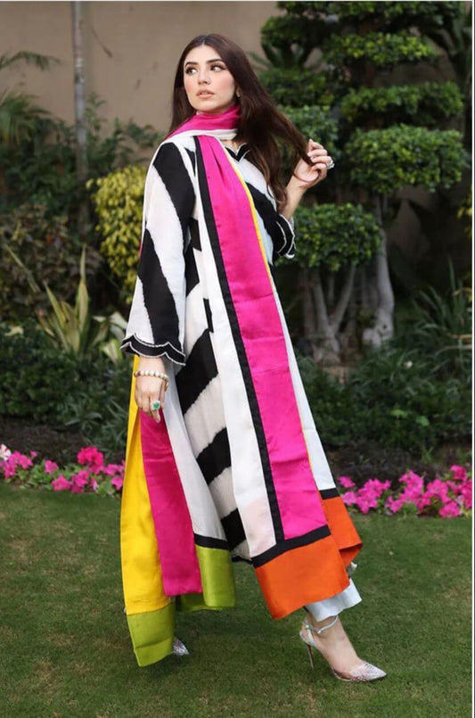 3 Piece - Unstitched Fully Embroided Lawn Silk Duppatta