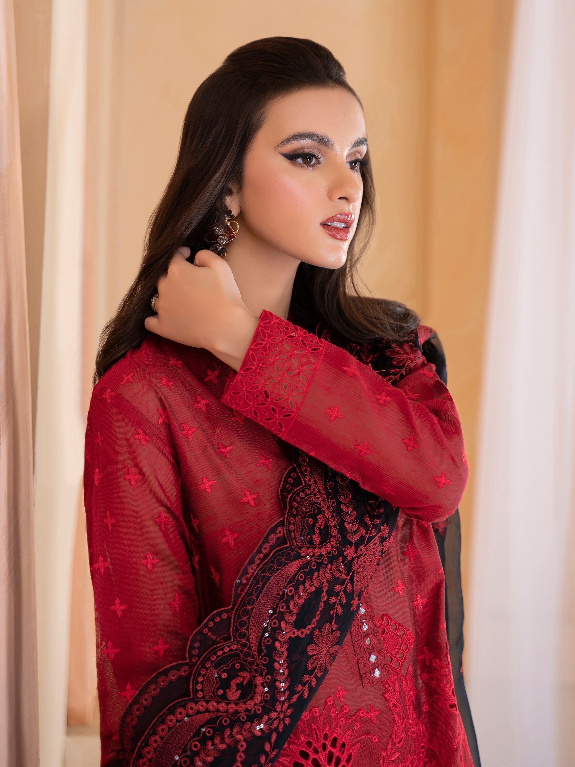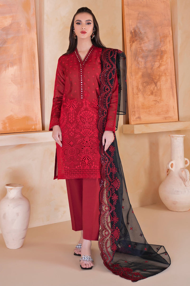 LM 20-Chicken kari borring 3Pc Fully Embroidered Lawn Stuff With Organza Fully Embroidered Dupatta Extra Patches